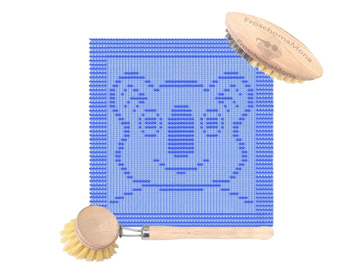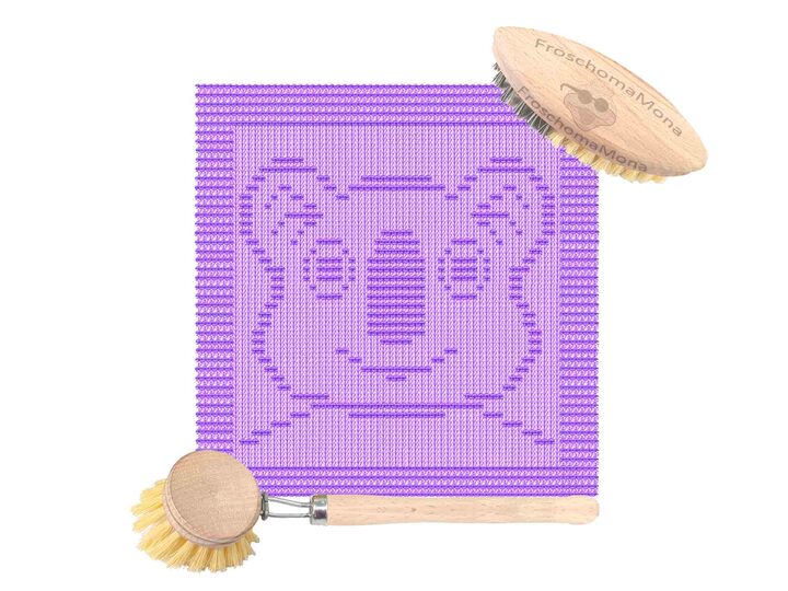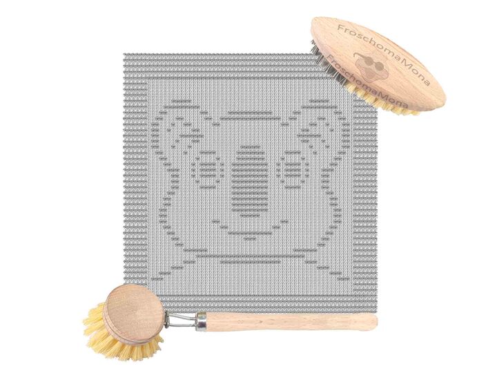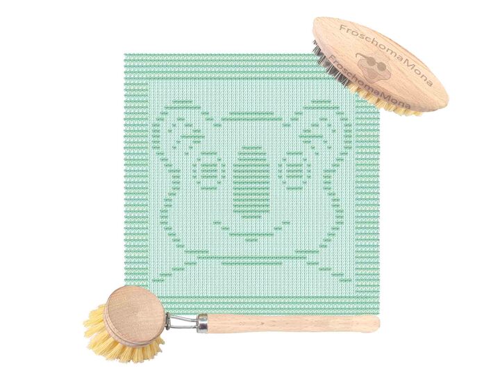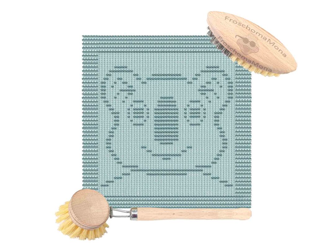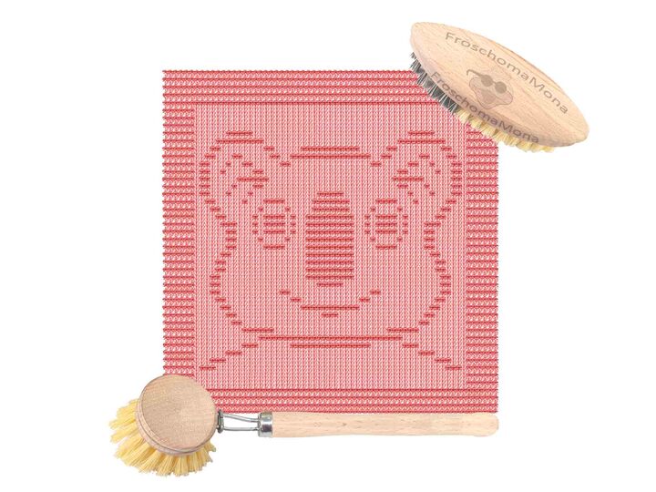 Spüllappen und Topflappen mit eingestrickten Motiven sind ein wahrer Hingucker in der Küche.