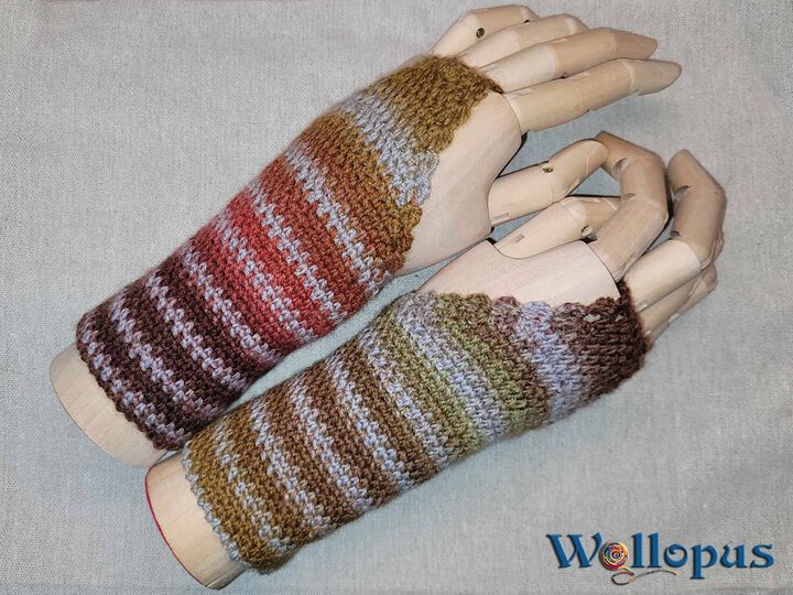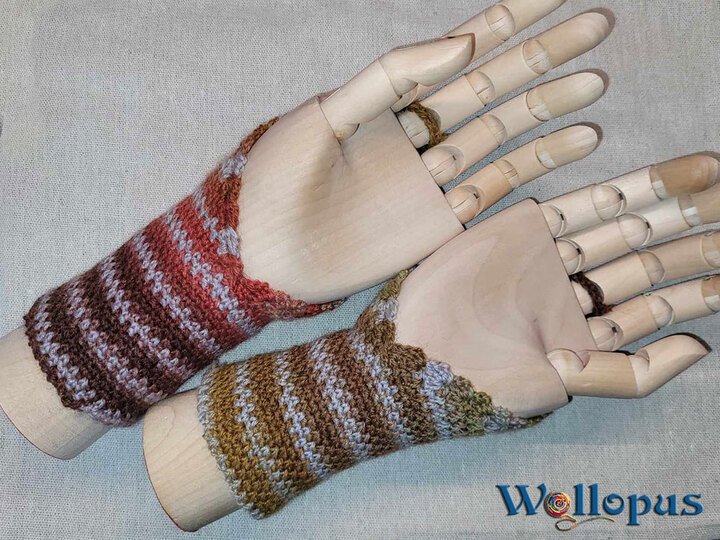 Ich beschreibe wie die Stulpen gemacht werden. Die Größe ergibt sich durch die Breite eurer Hände automatisch.