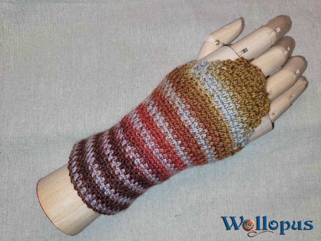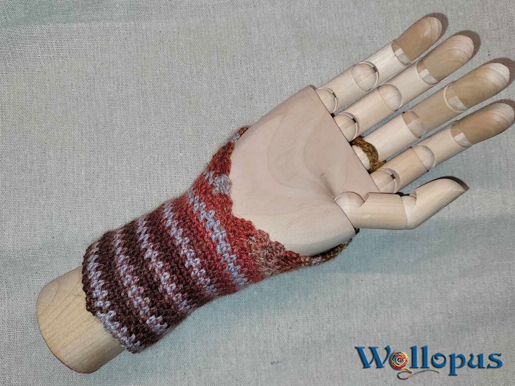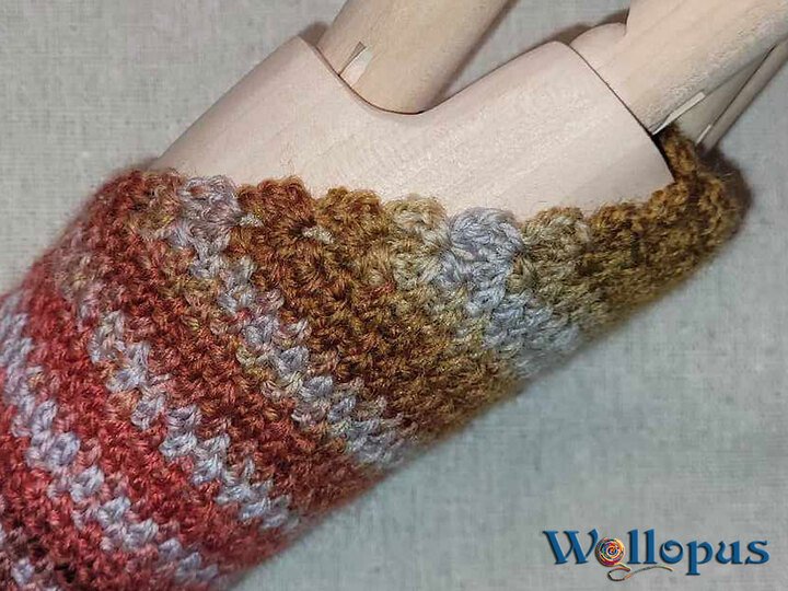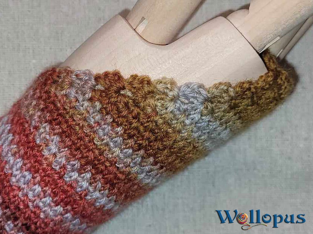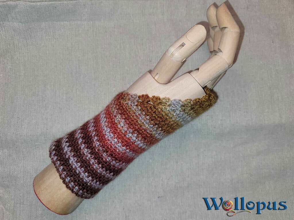 Und da ist sie nun, die gehäkelte Version der Autofahrerstulpe.
