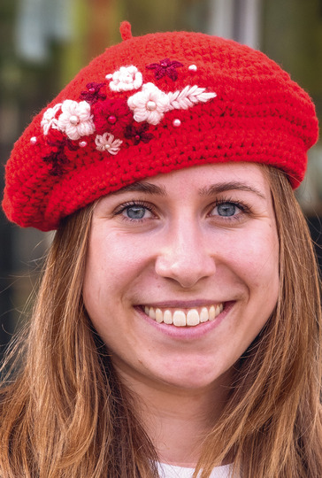 Die Baskenmütze ist als eine Art des Baretts schon seit Jahrhunderten bekannt. Diese französischste Accessoire aller Zeiten wurde ursprünglich von Herren getragen. Jetzt ist sie unter Damen angesagt. Mit dieser mit Baskenmütze aus roter Kaschmirwolle stechen Sie auf jeden Fall aus der Menge heraus. Gehäkelt wird sie mit festen Maschen und halben Stäbchen, vorn an der Front werden noch gehäkelte Blüten aufgenäht, die mit Margeriten- und Wickelstichen umstickt und mit Glasperlen verziert werden.