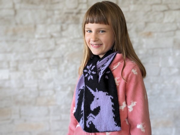 Dieser Schal mit dem magischen Einhorn im Schneegestöber erfreut kleine und große Einhornfans! Für jüngere Kinder empfehle ich Dir die Variante mit dem Einsteckschlitz wie in der Anleitung genau beschrieben. Für ältere Kinder oder Erwachsene kannst Du den Schal natürlich auch länger und ohne Einsteckschlitz stricken.