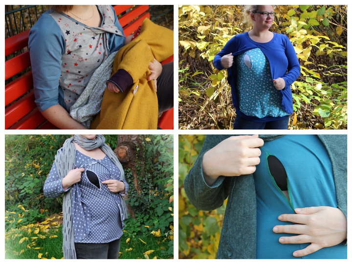 Designdetails: gerade geschnitten, hüftlang, Rundhalsausschnitt mit Beleg, kurzer, 3/4 tel oder langer Ärmel, Brustabnäher, der in das Armloch verläuft, Prinzessnaht, Passen die über dem Vorderteil liegen und eine Stillöffnung verdecken. Kann ohne Passen als Basicshirt genäht werden.