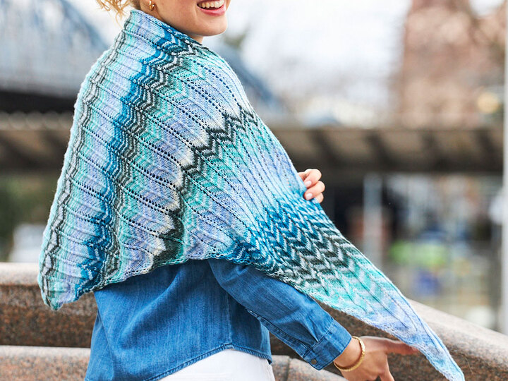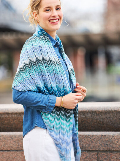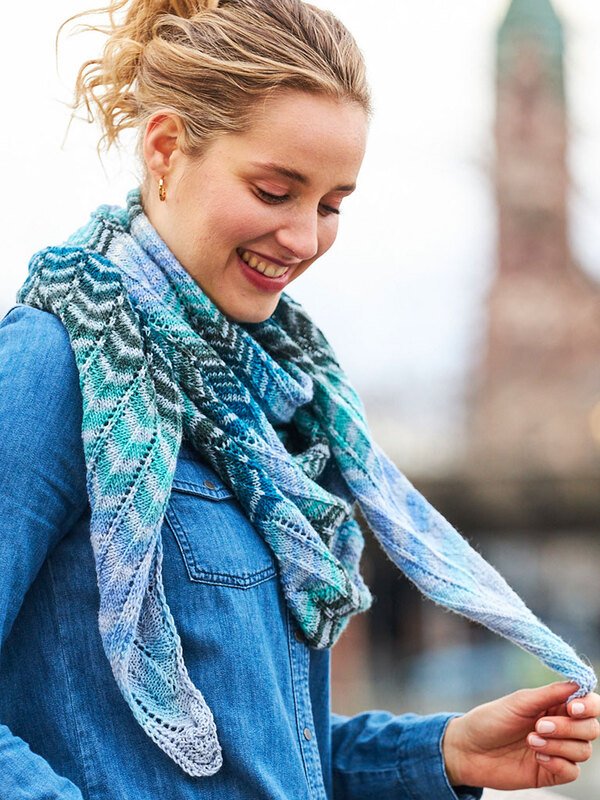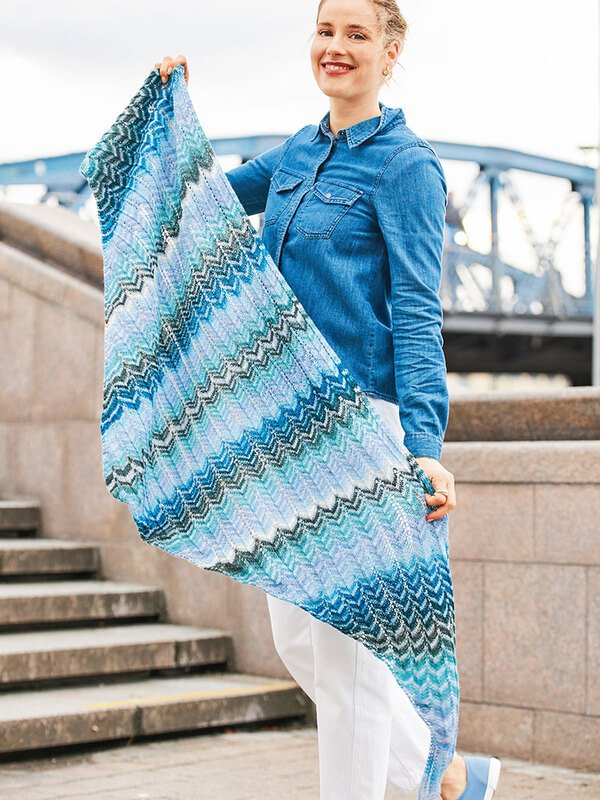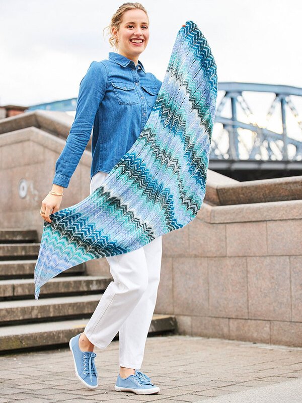 Dieses Tuch ist ein echter Hingucker und ein absolutes Must-Have für alle, die auf der Suche nach einem edlen und hyggeligen Accessoire sind. Es ist aus einem hochwertigen Garn aus Merinowolle und Seide gestrickt und hat ein einzigartiges Zackenmuster.