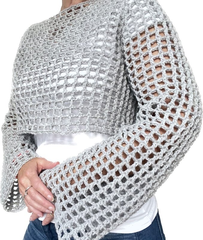 Von oben nach unten häkeln mit flared Ärmeln (Mesh-top)