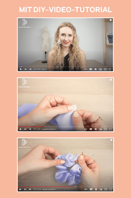 Wie dir das The Silvie Scrunchie gelingt, zeigt dir unsere Designerin Juliana ganz einfach und Schritt für Schritt in unserer kostenlosen Video-Anleitung.