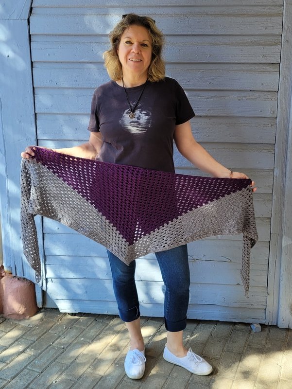 Das Häkeltuch im Granny Muster, Mathea, wird zunächst ganz normal gehäkelt.