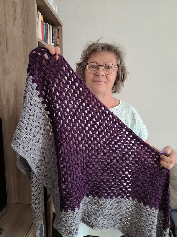 In einer anderen Farbe, damit das noch mehr auffällt. Ein toller Hingucker und ein schönes Tuch für die Übergangszeit und den Herbst.