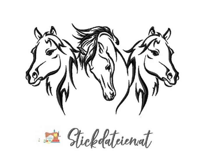 Willkommen in meinem Shop! Hier biete ich Ihnen eine wunderschöne Stickdatei mit 3 wilden Pferden in drei verschiedenen Größen an.