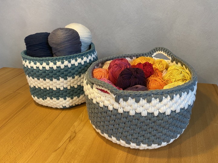 Hier erhältst du eine ausführliche Anleitung, um in einfachen Schritten Körbe mit gehäkeltem Boden z.B. zur Wollaufbewahrung, in zwei Größen selbst zu häkeln. Es sind verschiedene Techniken ausführlich beschrieben, so dass du Farbwechsel, Verzierungen oder mit und ohne Henkel individuell entscheiden und anwenden kannst.