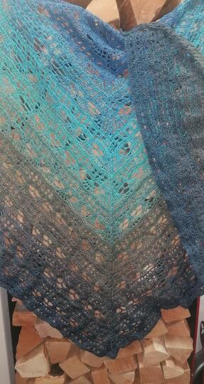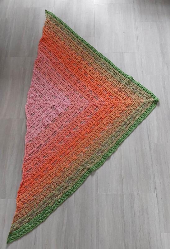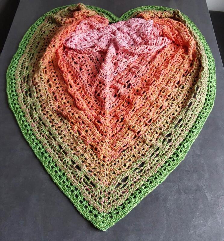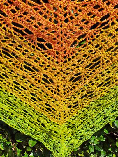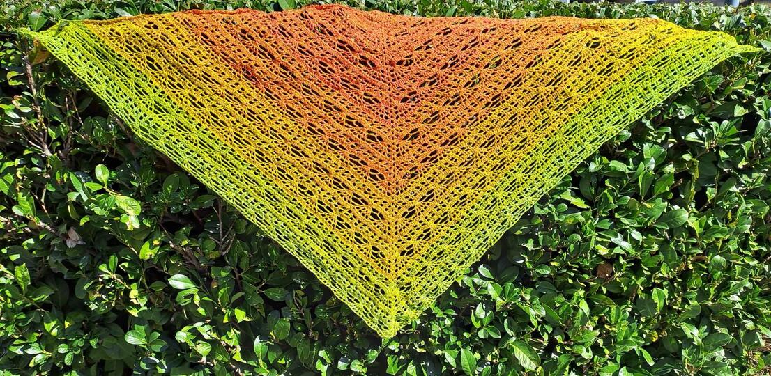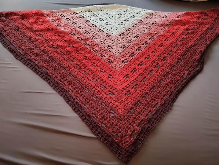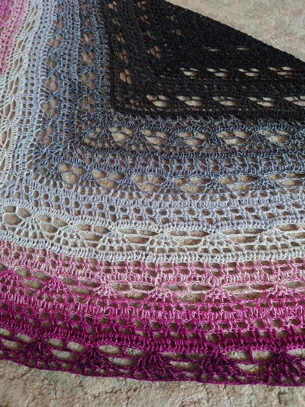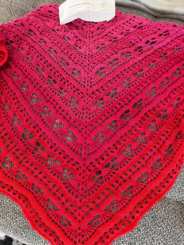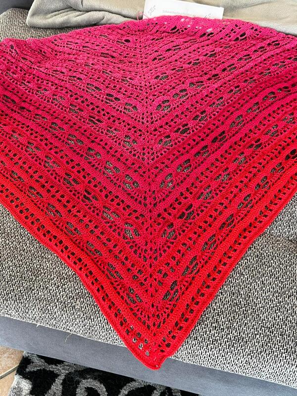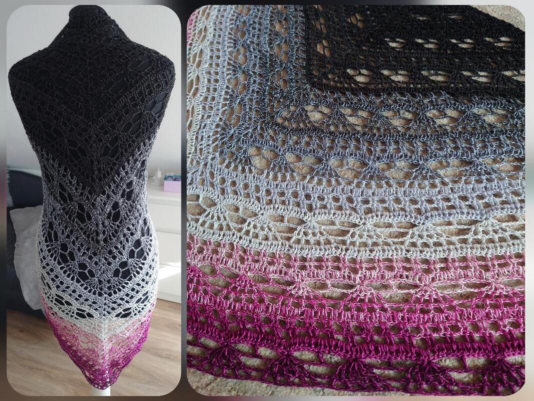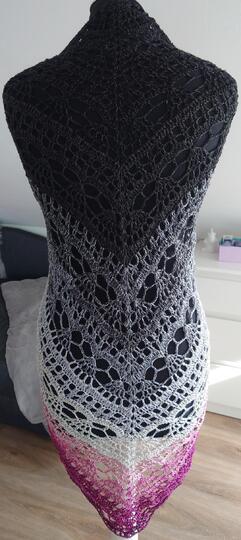 Die Anleitung zum Tuch besteht aus schriftlich ausformulierten Reihen und beinhaltet Häkelschriften.
