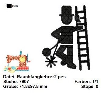 ️Diese Stickdatei zeigt einen stilisierten Rauchfangkehrer mit Leiter.