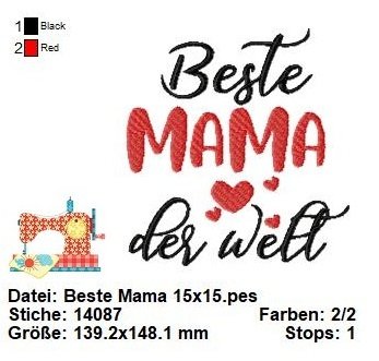 Erweitern Sie Ihre kreative Reise mit unserem „Mama-Stickerei“-Design, einer berührenden Darstellung mütterlicher Liebe. Diese Stickdatei fängt die Essenz der besonderen Bindung zwischen einer Mama und ihren Lieben ein und macht sie zu einer geschätzten Ergänzung Ihres Stickrepertoires.