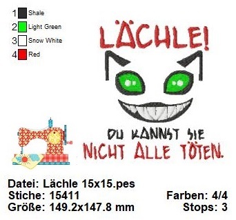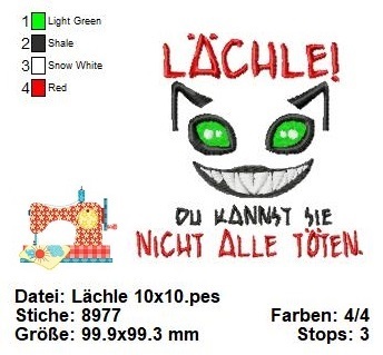 Mit dieser Stickdatei können Sie eine fröhliche und humorvolle Botschaft auf eine kreative und persönliche Weise übermitteln.