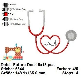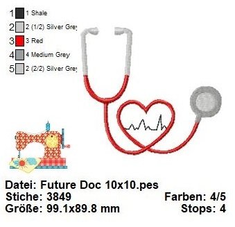 Bitte beachten Sie: Es handelt sich um eine digitale Stickdatei und nicht um ein physisches Stethoskop.