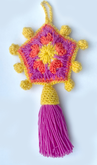 die Quaste mit Bommelchen ist 12 cm breit und 22 cm lang