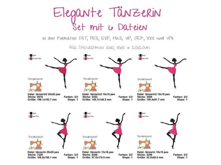 Das Stickdatei-Set mit einer Balletttänzerin ist ein Must-have für alle Ballettliebhaberinnen und Bastlerinnen, die eine perfekte Verbindung von Eleganz und Handarbeit schaffen möchten. Starten Sie Ihre Stickmaschine und lassen Sie Ihrer Kreativität freien Lauf!