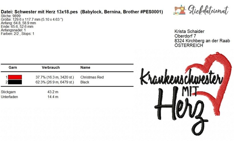 Die Stickdatei wurde speziell für Krankenschwestern entworfen und kombiniert ein Herz-Symbol mit einem Schriftzug. Das Herzsymbol ist ein Symbol für Liebe, Mitgefühl und Hingabe - Werte, die eine Krankenschwester verkörpert.