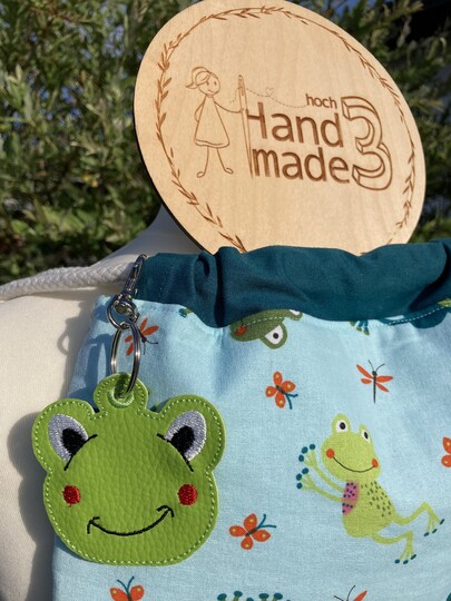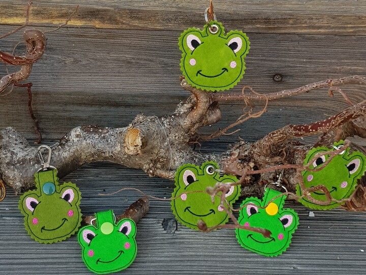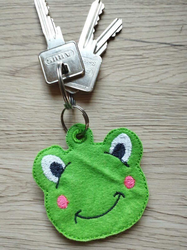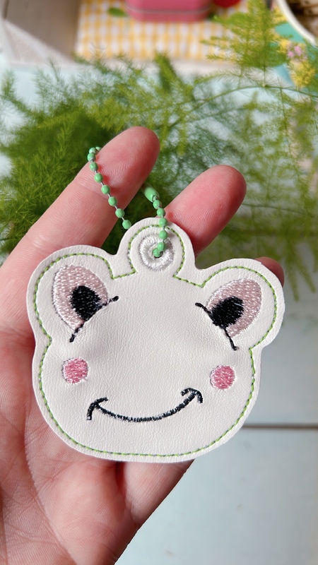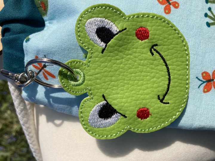 ITH Stickdatei für einen Anhänger mit einem süßen Frosch.