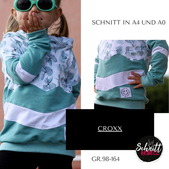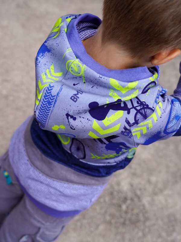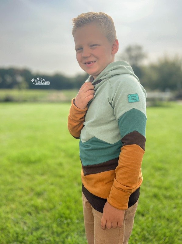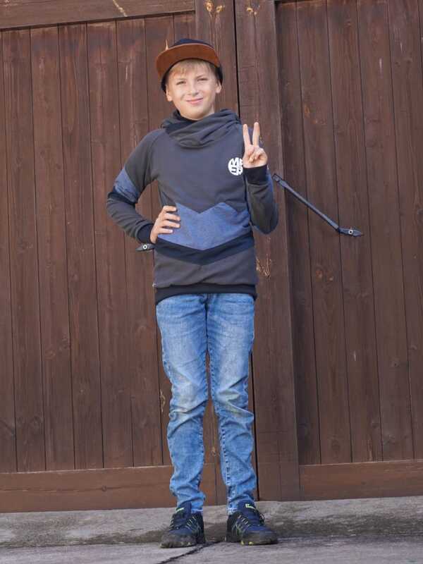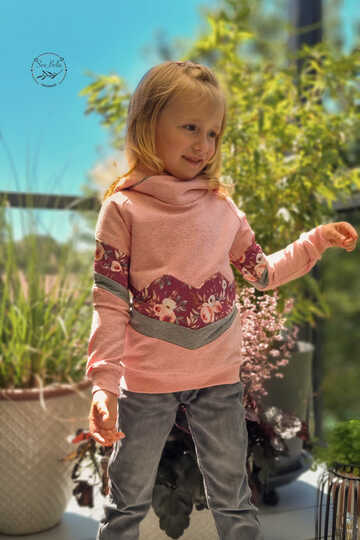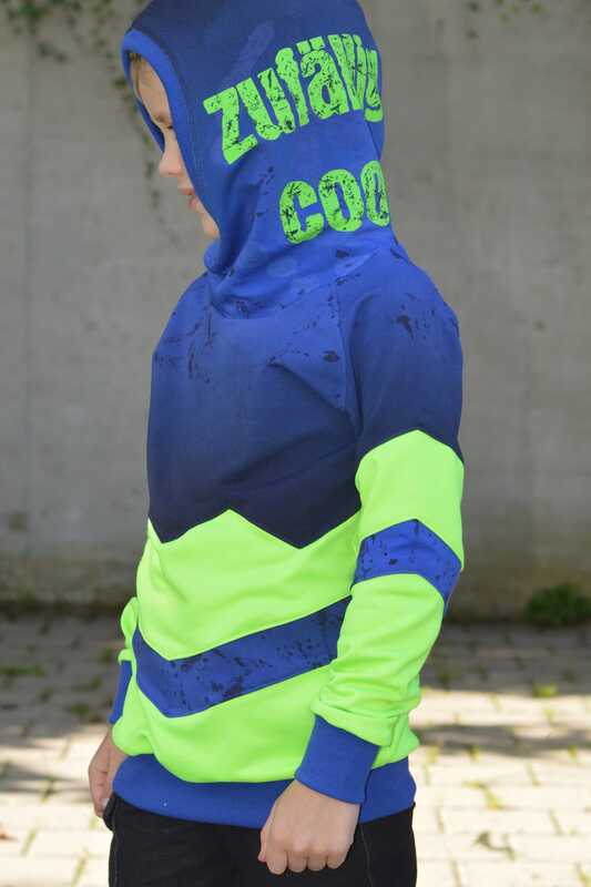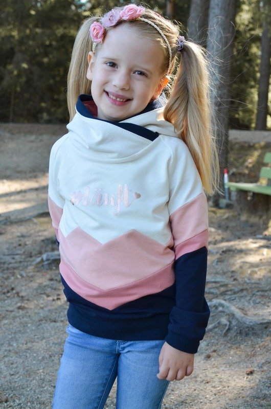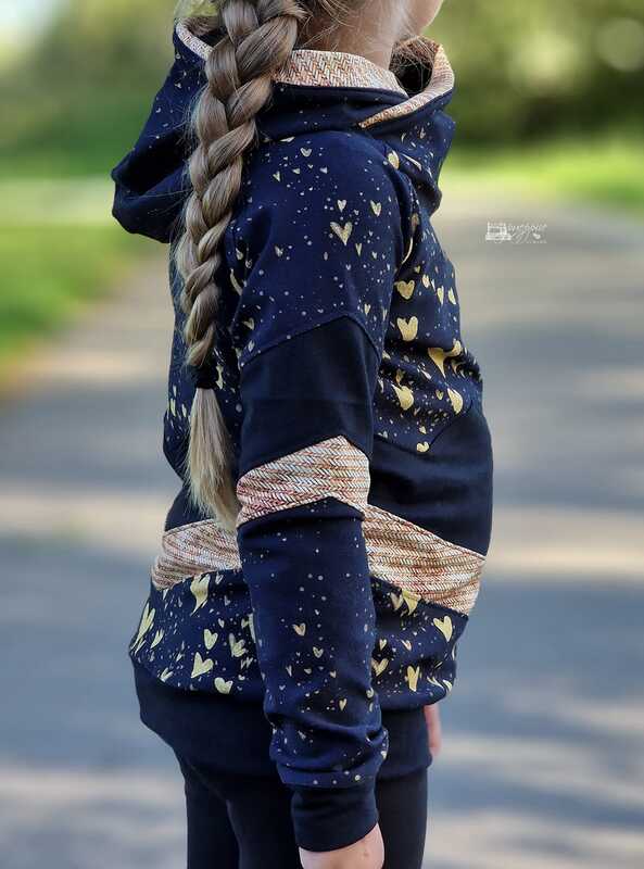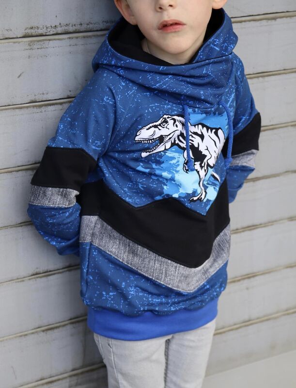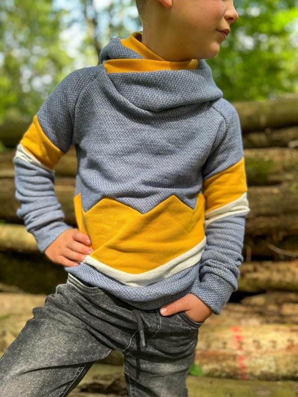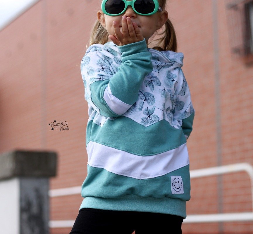 Mit Hoodie Croxx bist Du hierfür jedenfalls bestens gerüstet. Du kannst ihn sowohl mit, als auch ohne Teilungen nähen. Ideal geeignet auch zur Verwertung kleinster Reste ab 15 cm. Nur mit einer oder sogar ganz ohne Teilungen ist er für Panelstoffe prima nutzbar und Deiner Kreativität sind keine Grenzen gesetzt. Und sehen die Zacken der oberen Teilung nicht aus wie eine Krone? Ideal als Geburtstagshoodie, findest Du nicht auch?