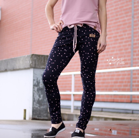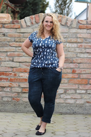 Ausgelegt ist der Schnitt auf French Terry oder Sommersweat, aber sicherlich könnt ihr auch etwas festeren Jersey verwenden. z.B. hat sich Jacquardjersey im Probenähen auch als geeignet erwiesen.