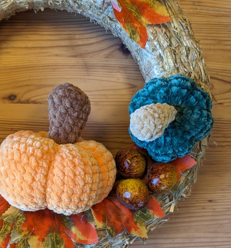 Mit dieser Anleitung lassen sich entzückende Details für einen Herbstkranz oder auch nur als Herbstdeko häkeln.