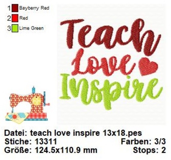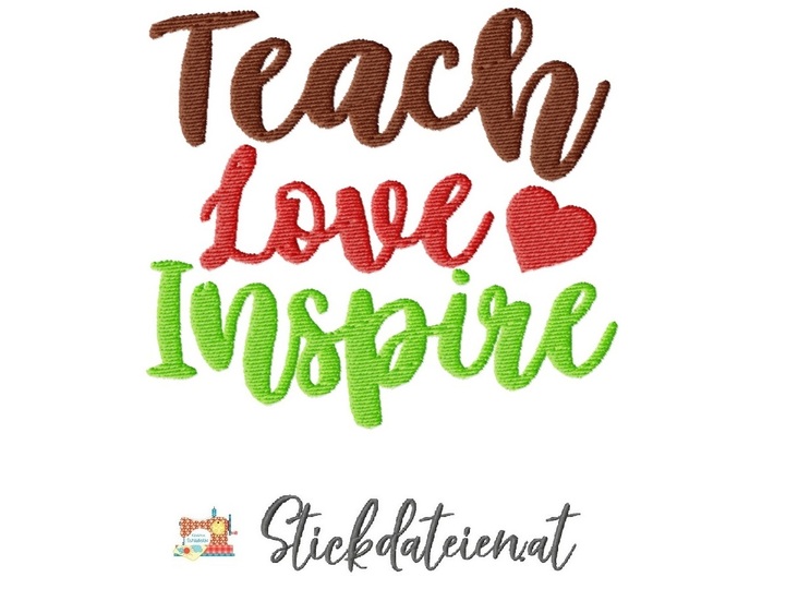 ️ Unsere Stickdatei mit dem Schriftzug "Teach, Love, Inspire" ist eine kraftvolle Botschaft, die in drei verschiedenen Größen erhältlich ist. Diese inspirierende Phrase ist mehr als nur Worte; sie ist eine Lebensphilosophie, die Erziehung, Liebe und Inspiration hervorhebt.