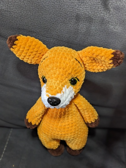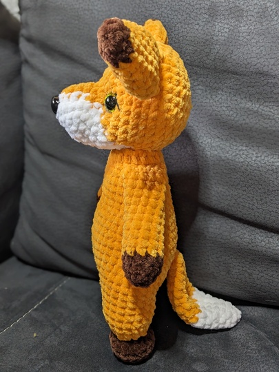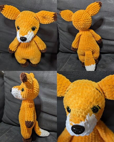 Die Anleitung ist in Deutsch. Mit Hilfe dieser Anleitung können Anfänger und natürlich auch Fortgeschrittene den süßen Fuchs nachhäkeln. Sie ist ausführlich beschrieben und bietet auch etliche Tipps und Kniffe. Zum Beispiel wie man die Sicherheitsaugen und die Nase versiegelt.