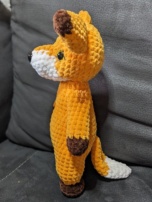 Mit deiner Häkelnadel in Stärke 4,0 und der in der Anleitung angegebenen Wolle - Chenille 100 g /120 m - wird Fix ca. 28 cm groß.