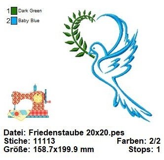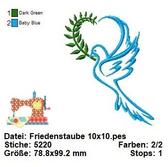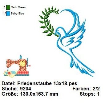 ️ Diese elegante Stickdatei zeigt eine stilisierte Taube, die einen Zweig im Schnabel hält.