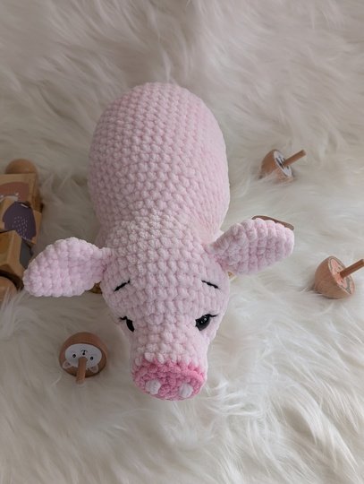 Besonders schön ist, dass man bei diesem Schwein ausschließlich die Beine annähen muss. Ohren und Schwanz, werden im Verlauf der Arbeit mit eingehäkelt.