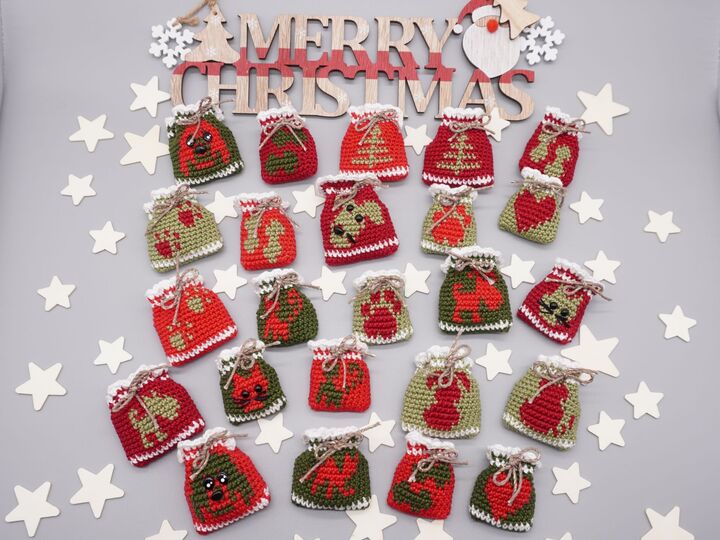 Ein Adventskalender für Groß und Klein: Dieser liebevoll gestaltete Weihnachtskalender begeistert nicht nur Kinder, sondern auch Erwachsene. Die niedlichen Tiermotive, die mit viel Liebe zum Detail gehäkelt wurden, sorgen für eine festliche Atmosphäre und bringen die Vorfreude auf das Weihnachtsfest zum Ausdruck. Neben den befüllbaren Säckchen enthält die Anleitung auch eine praktische Druckvorlage für die Zahlen. Dank der ausführlichen Beschreibung und der bebilderten Schritte ist dieses DIY-Projekt sowohl für Anfänger als auch erfahrene Häkler geeignet. Verschenke oder behalte diesen besonderen Adventskalender für dich selbst und zähle gemeinsam mit deinen Liebsten die Tage bis Weihnachten.