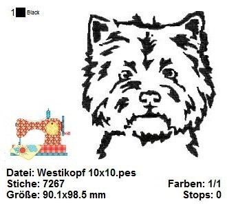 ️ Diese Stickdatei zeigt die Silhouette eines West Highland Terrier Kopfes.