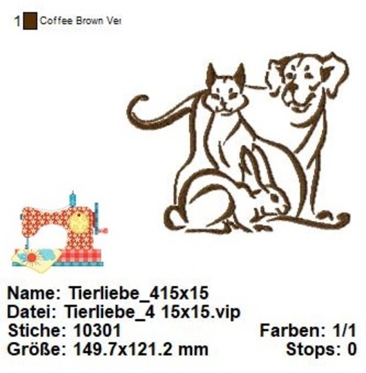 Diese Stickdatei präsentiert eine charmante Sammlung von stilisierten Tiermotiven, darunter ein Hund, eine Katze, ein Vogel und ein Hase. Jedes Tier ist mit Liebe zum Detail entworfen und strahlt eine einzigartige Persönlichkeit aus, die sicherlich Tierliebhaber jeden Alters begeistern wird.