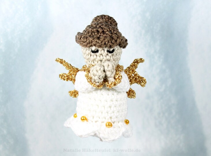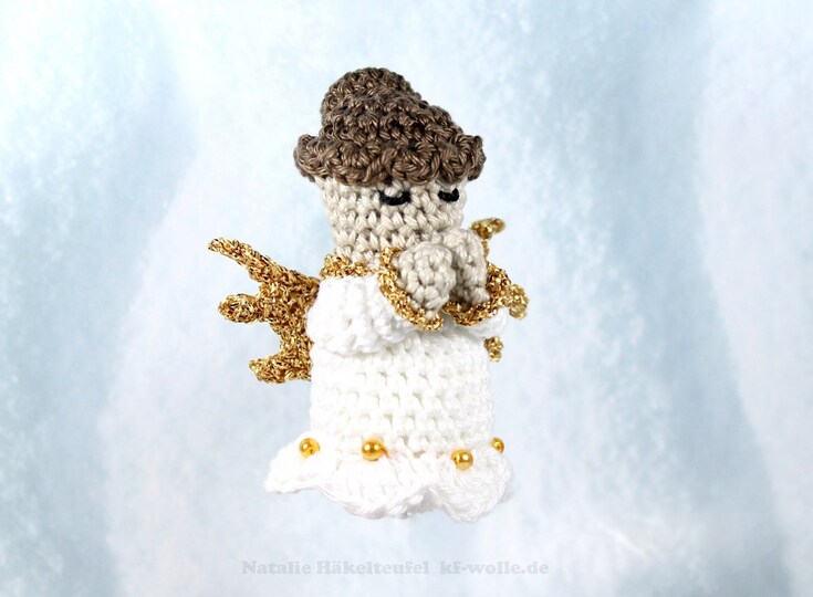 Die umfangreiche, reichlich bebilderte PDF-Häkelanleitung zum Häkeln von Schlüsselanhänger (Tannenbaumschmuck) "Engel" zum Dekorieren des Tannenbaums oder als Mitbringsel für die Freunde. Den Engel kann man auch als Schlüsselanhänger benutzen. Der Engel kann sowohl stehen, als auch aufgehängt werden. Länge ist ca. 7 cm.