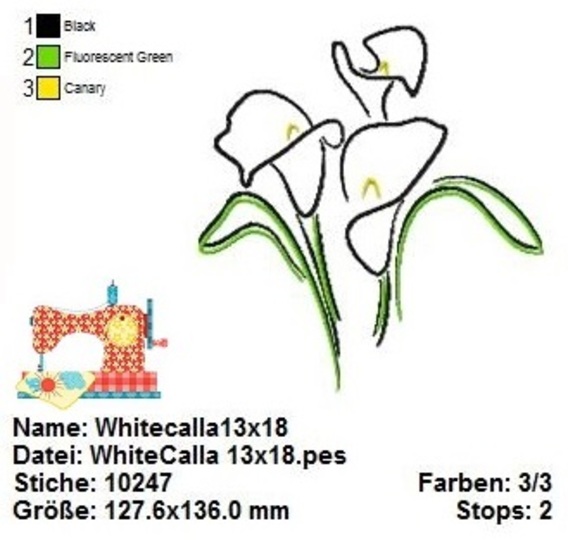 Mit dieser Stickdatei können Sie ein wunderschönes und detailliertes Stickbild erstellen, das die Schönheit der White Calla einfängt.