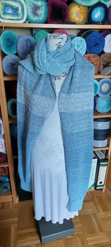 Die Größe und der Verbrauch der Wolle ist abhängig von der Festigkeit wie man selbst häkelt, sowie Faden- und Nadelstärke.