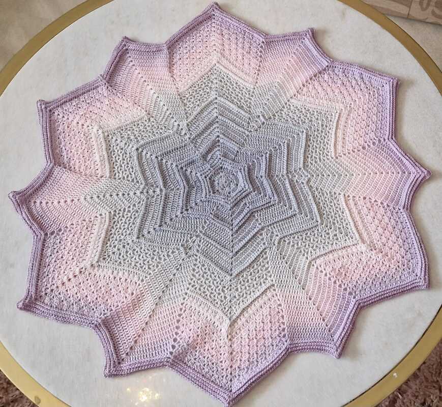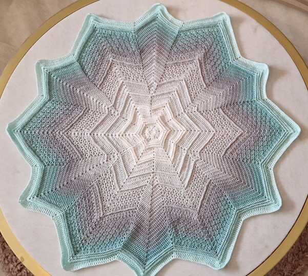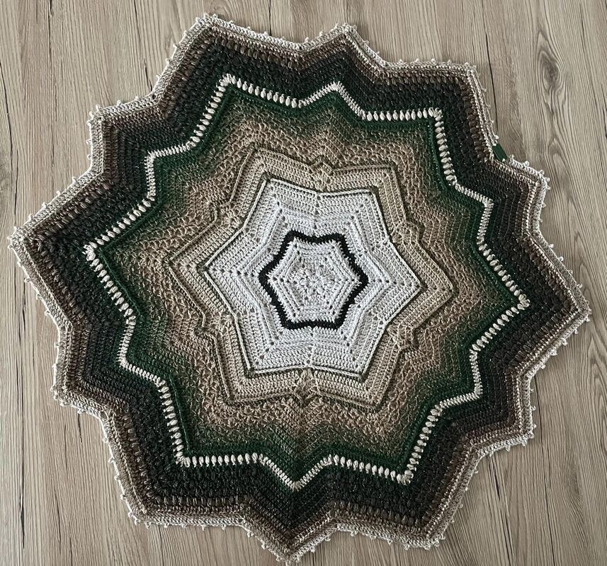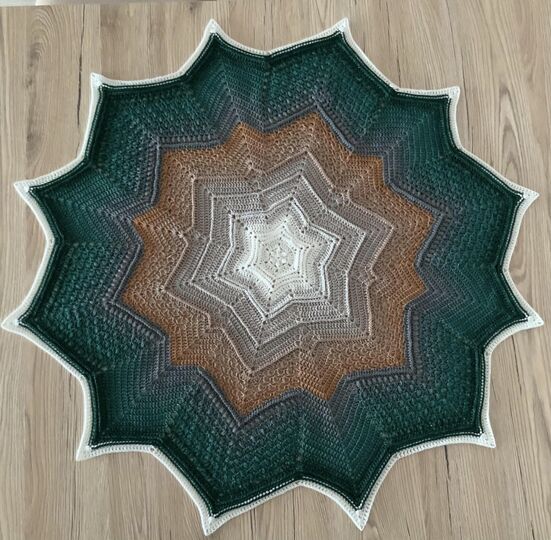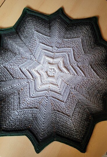 Je nachdem ob du alle Runden arbeiten möchtest oder nach Runde 30 beendest, erreichst du ca 60cm oder 90cm im Durchmesser.