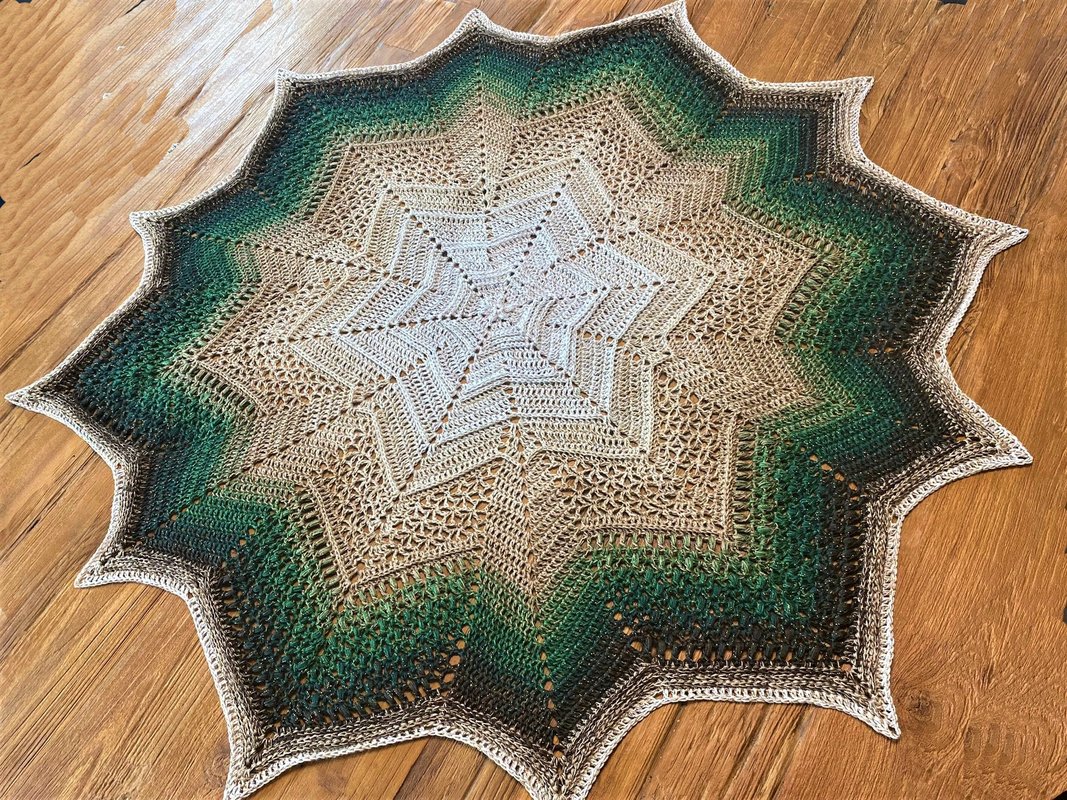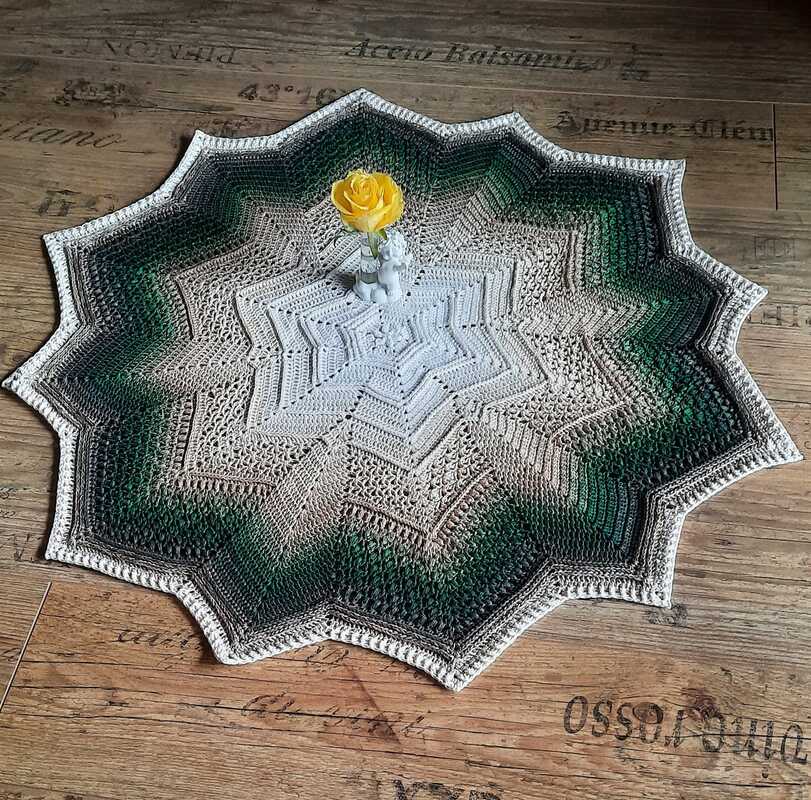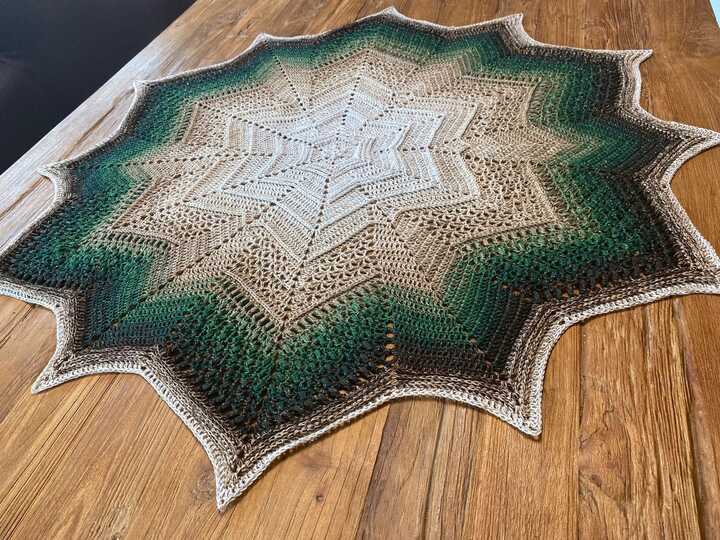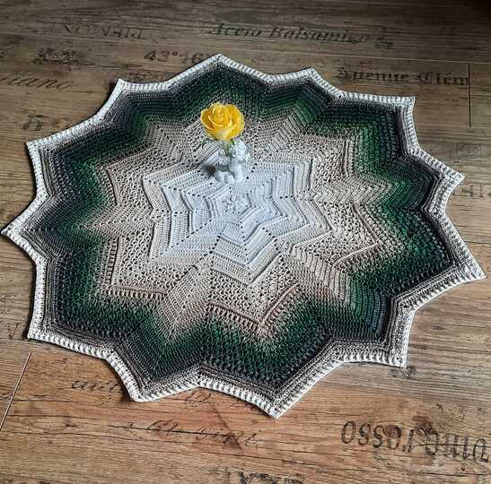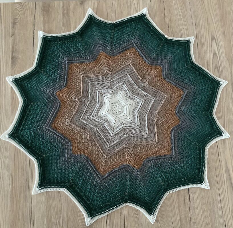 Um alle Runden zu häkeln und einen Durchmesser von ca 90cm zu erreichen, brauchst du 1000m 3fädiges Bobbelgarn. Möchtest du nach Runde 30 beenden und 60cm Durchmesser erreichen, brauchst du 500m 3fädiges Boobbelgarn. Die Beispielbilder sind gefertigt aus Bobbeln von GeWolltes- die Gruppe ( facebook). Häkelnadel Nr 3,5 oder eine Stärke deiner Wahl, mit der dir das Maschenbild gefällt. Zum vernähen des Anfangs- und Endfadens brauchst du eine Stopfnadel und eine Schere.