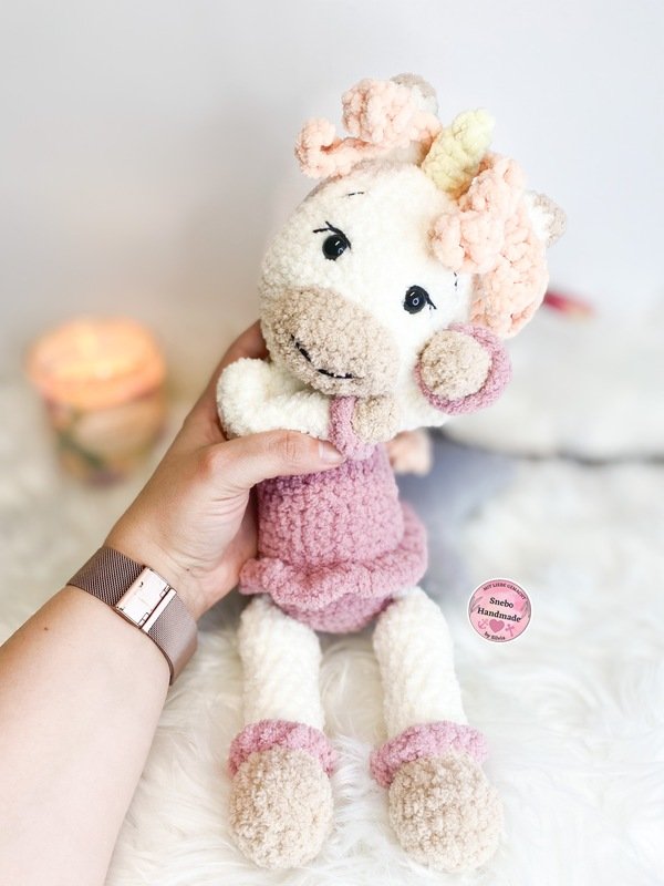 Einhorn Matea ist eine gut bebilderte Häkelanleitung, die selbst von Häkelanfängerinnen mit etwas Vorkenntnissen gut zu meistern ist.