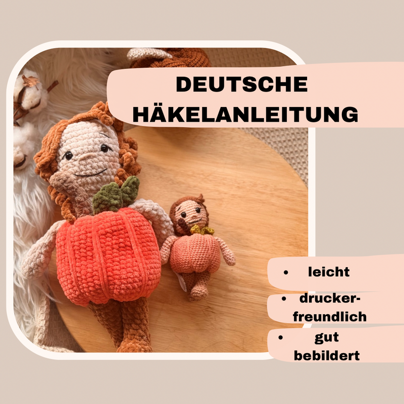 In einer ausführlichen und gut bebilderten Anleitung erkläre ich dir Schritt für Schritt den Weg zu dem süßen Kürbisjungen. Dabei merkst du , wieviel Liebe zum Detail in der Anleitung steckt.️