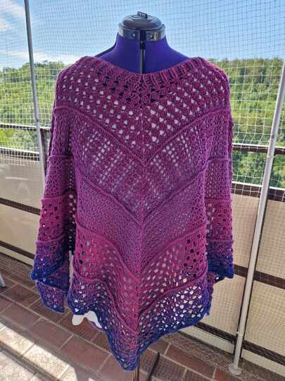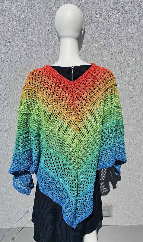Dies ist die Anleitung für einen Onesize Poncho. Er wird RVO gearbeitet. Dies erspart das Zusammennähen.