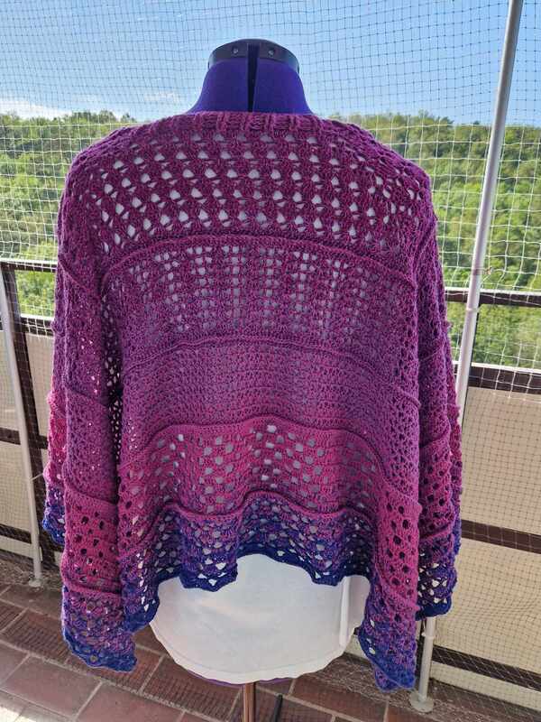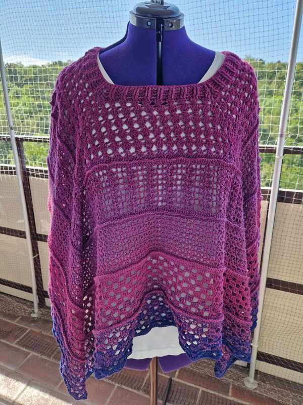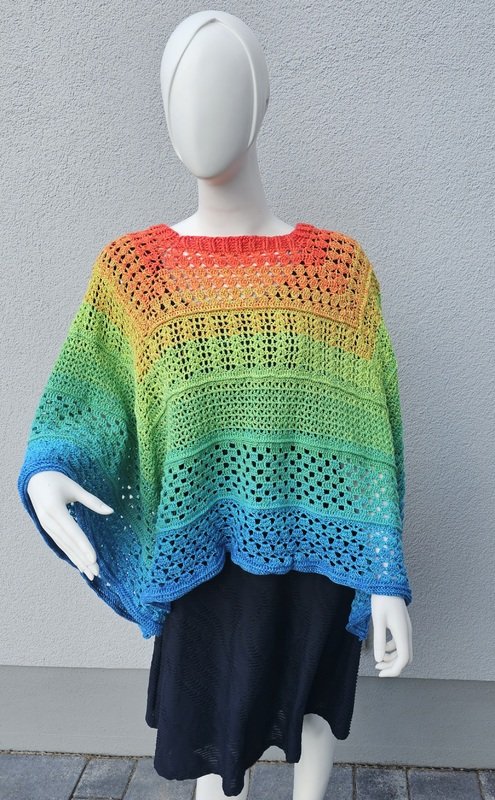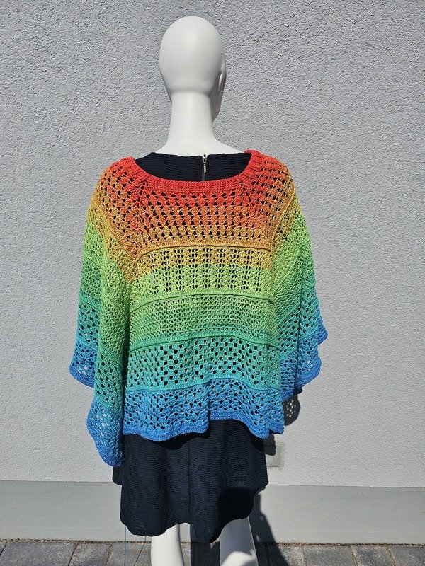 Der Poncho ist Onesize. Es gibt die Möglichkeit mit 2 unterschliedlichen Maschanzahlen zu beginnen.