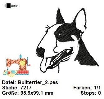 Diese Stickdatei mit Bullterrier Motiv ist ein absolutes Highlight für alle Hundefreunde und Stickerei-Liebhaber, das die einzigartige Schönheit und den Charakter des Bullterriers einfängt.