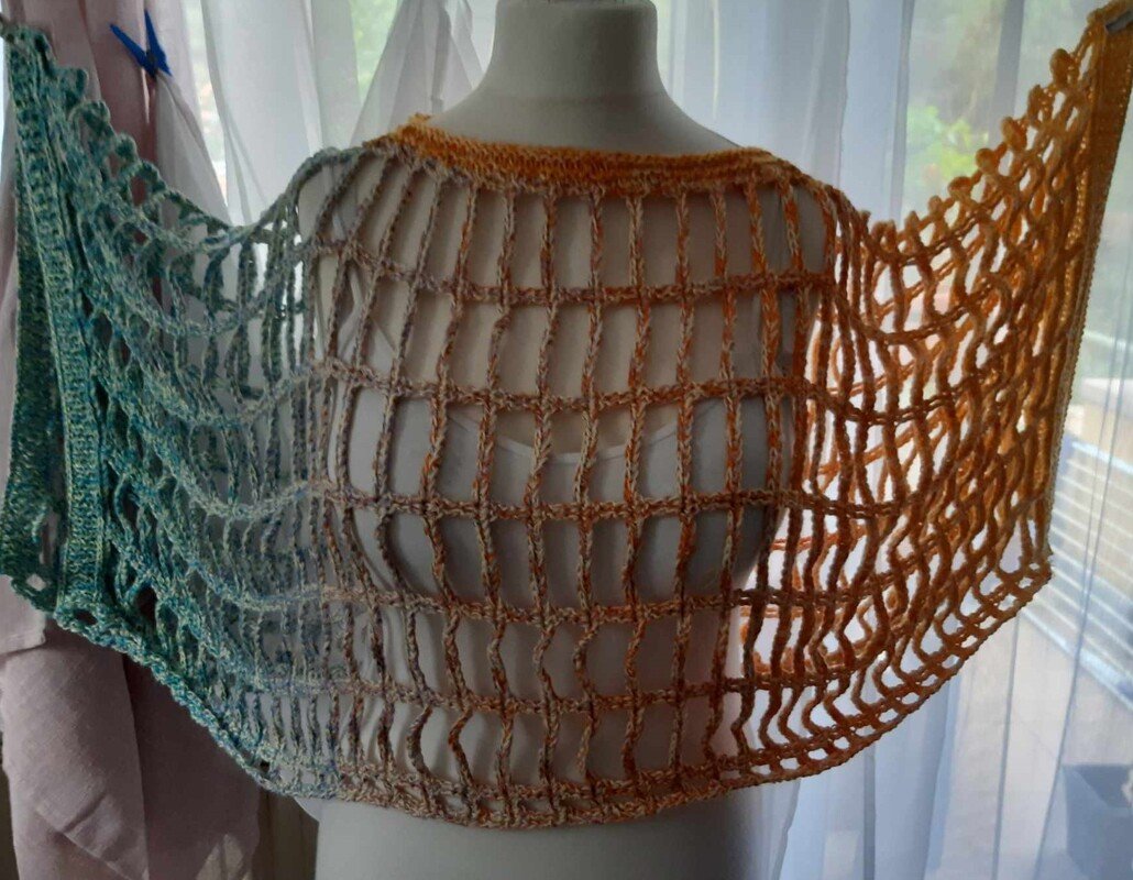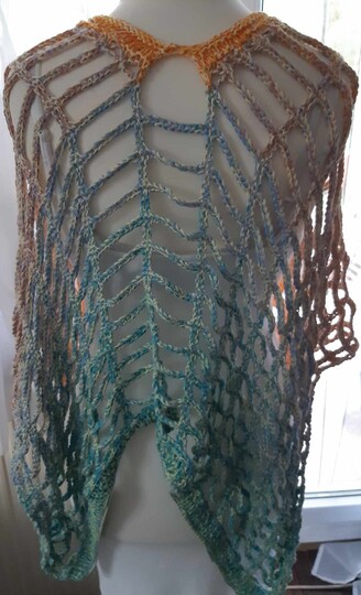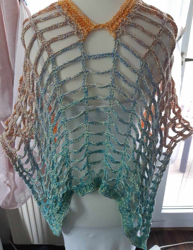 Hier könnt ihr die Anleitung über einen luftigen Poncho erwerben, der gestrickt und gehäkelt wird.