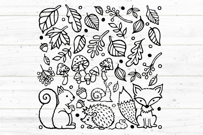 Mit dieser Plotterdatei mit Fuchs, Eichhörnchen, Schnecke, Maus, Pilzen, vielen Blättern und mehr