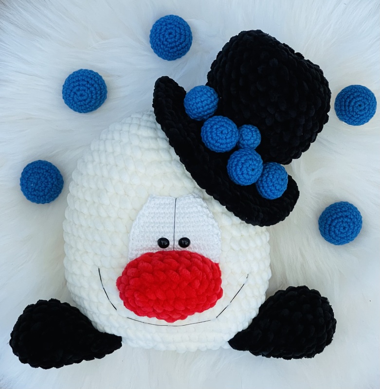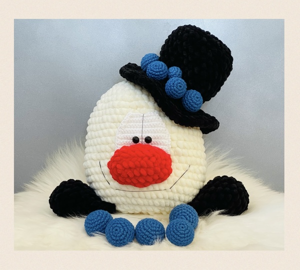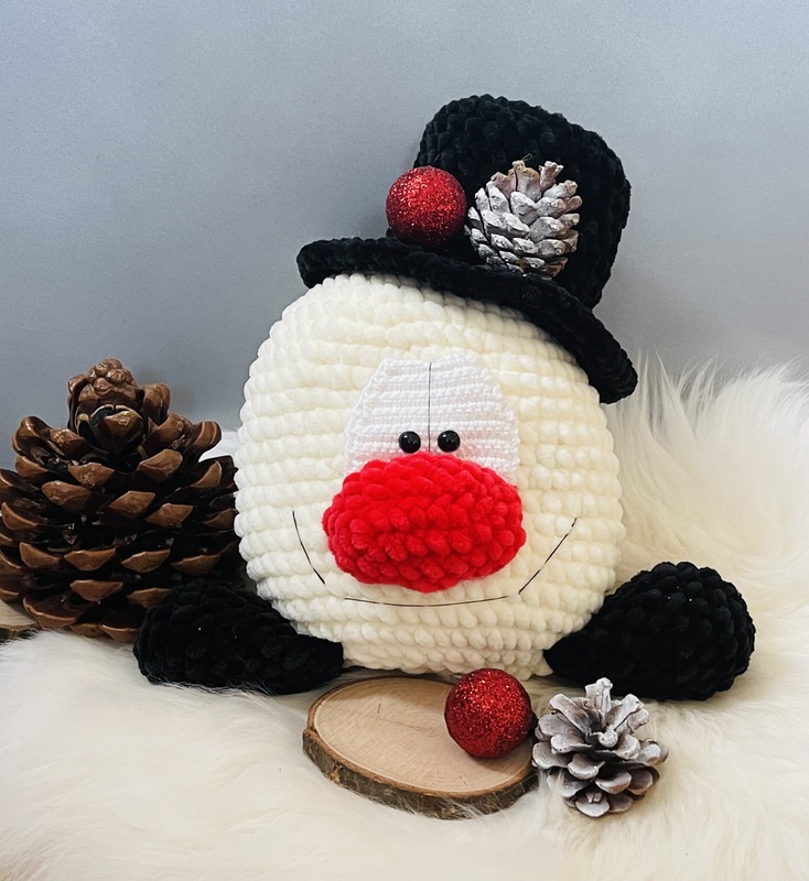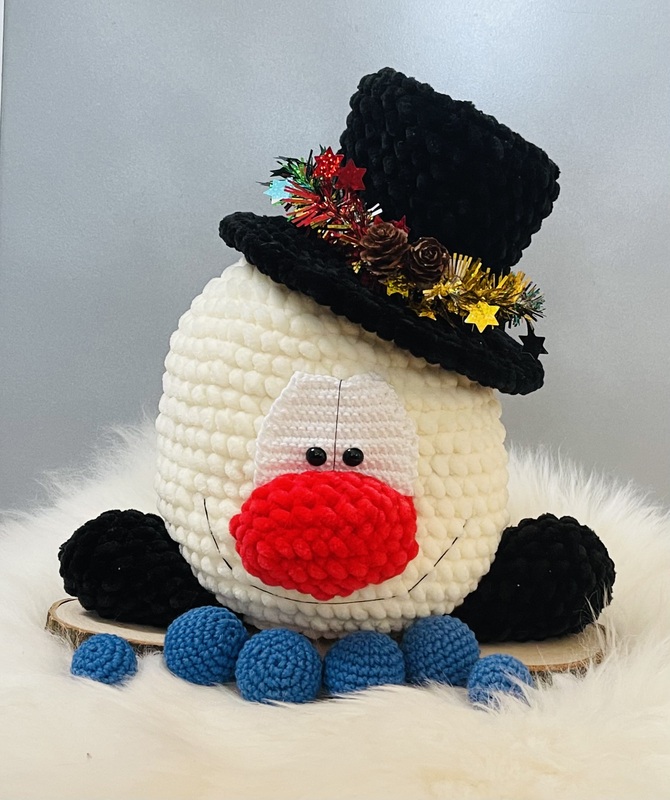 Schneeball mit Hut ca. 22cm hoch, je nach Häkelstil