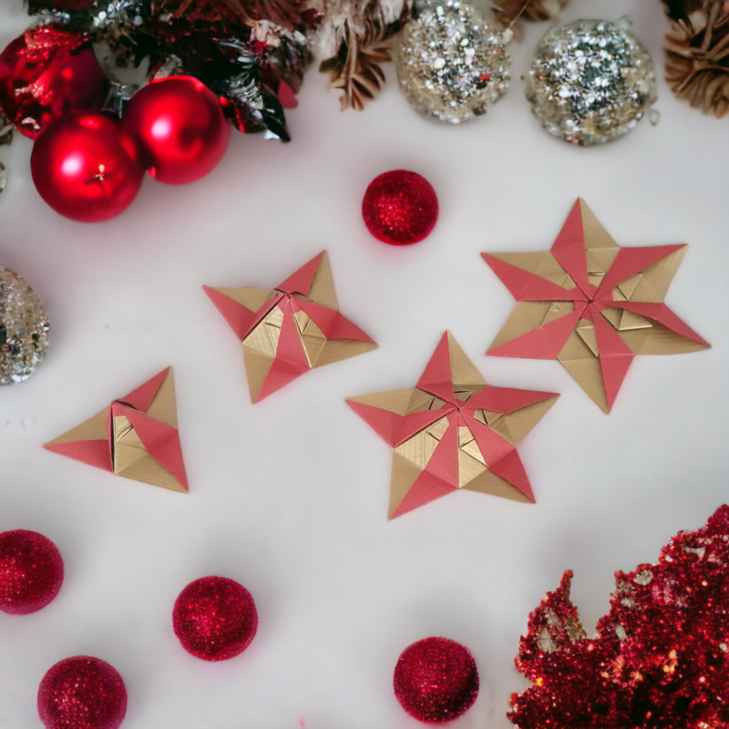 Diese Faltanleitung (digitales Produkt) für mehrere Origami-Sterne beschreibt das Noémi-Modul. Das von mir entworfene Modul ist sehr einfach zu falten. Mit dem Noémi-Modul können 2D-Sterne, 2½D-Stern und 3D-Sterne zusammengesteckt werden.