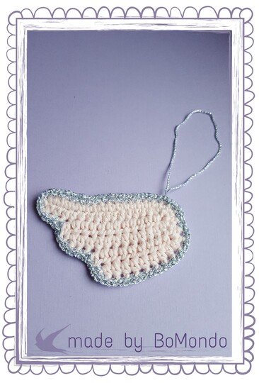 Die gehäkekte Deko darf in "handelsüblicher Menge" verkauft werden, jedoch nicht in Massenproduktionen. Bei Veröffentlichung auf deiner privaten Seite/Blog ist der Verweis made by BoMondo und/oder der Link: https://www.crazypatterns.net/de/items/edit/9507/engelsfluegel anzugeben!