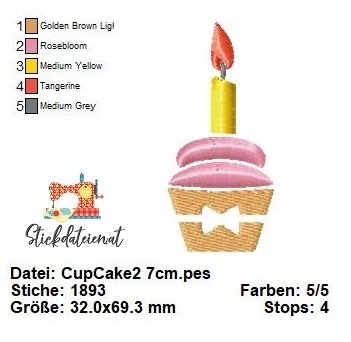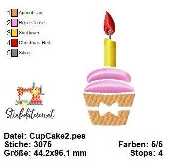 Diese entzückende Stickdatei präsentiert einen süßen Cupcake, der jedem das Wasser im Mund zusammenlaufen lässt. Der Cupcake ist liebevoll mit vielen Details gestaltet, einschließlich einer üppigen Cremehaube und einer Kerze obendrauf.