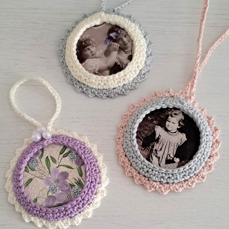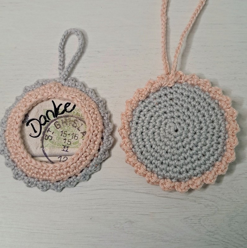 Die Anhänger werden vorwiegend in Spiralrunden mit festen Maschen gehäkelt. Für den Rand werden halbe Stb, Lfm und Km benötigt.